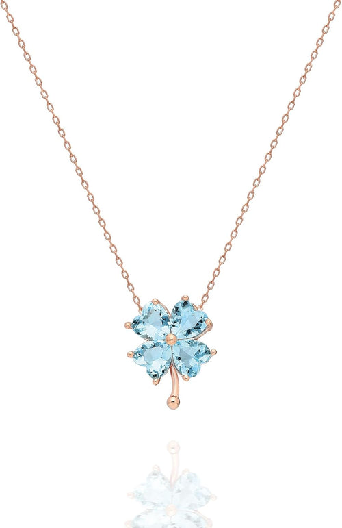 925 Ayar Aquamarin Taşlı Yonca Kolye Kadın Gümüş Kolye
