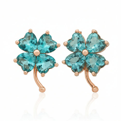 925 Ayar Aquamarin Taşlı Yonca Küpe Kadın Gümüş Küpe