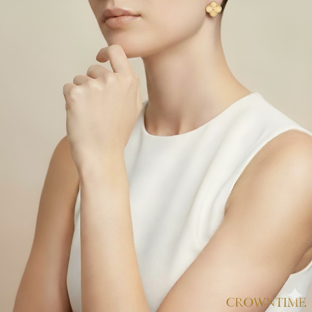 ✨ Van Cleef Vintage Alhambra Tarzı Küpe – Paslanmaz Çelik / 18K Altın Kaplama ✨