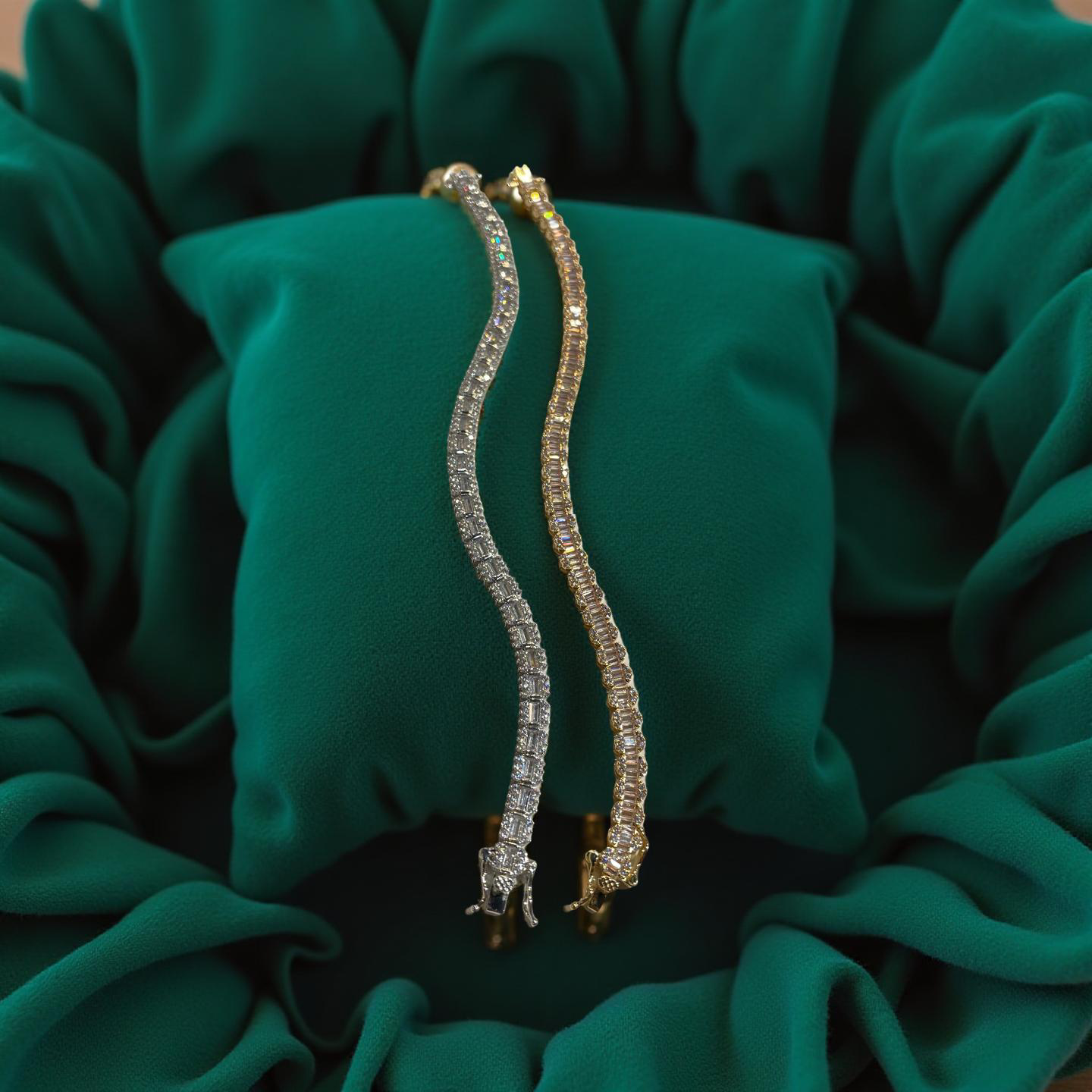 Suyun akıcı ve dingin formundan ilham alan bu muhteşem full taşlı bileklik, altın ve gümüş renk seçenekleriyle gardırobunuzun vazgeçilmezi olmaya geliyor!